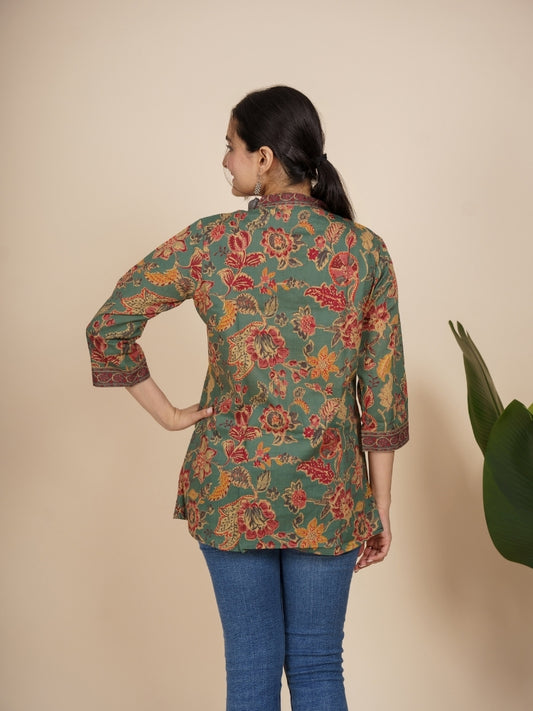 Ekisha's women green designer lace printed cotton tunic top short kurti