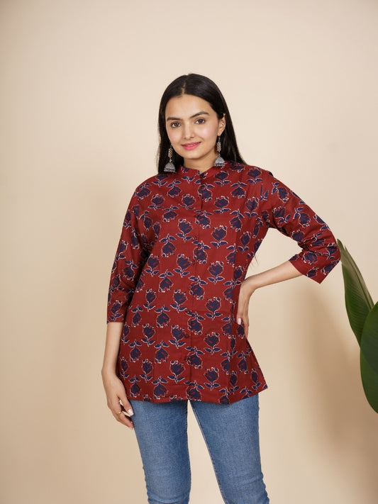 Ekisha's women maroon floral designer cotton printed tunic top short kurti
