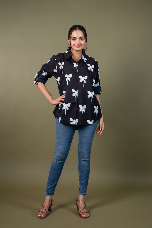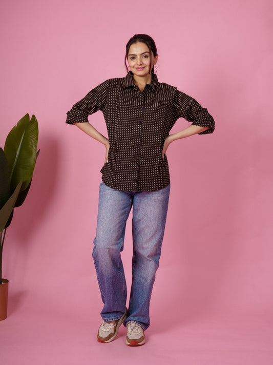 Ekisha Women cotton black dots printed relaxed fit shirt