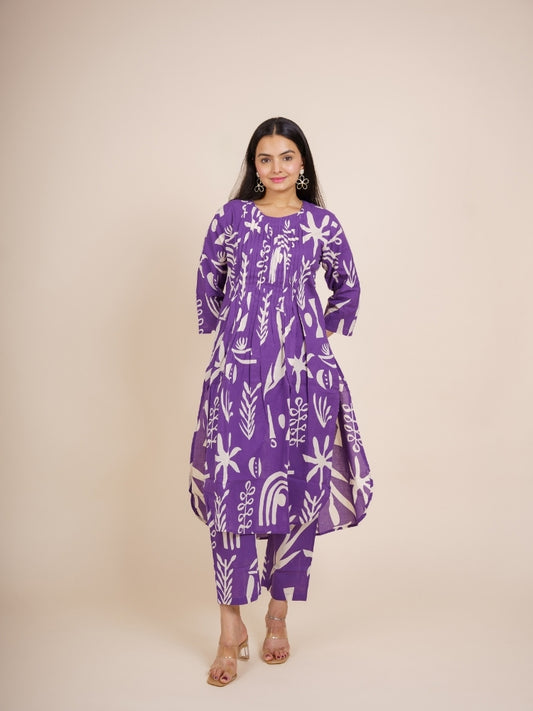 Ekisha's women purple designer abstract printed cotton co-ord set lounge wear