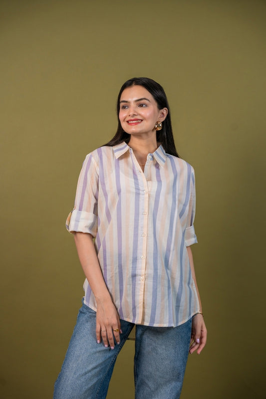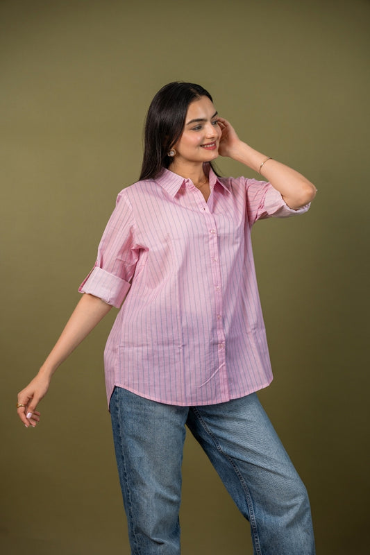 Ekisha Women cotton pink stripes relaxed fit shirt