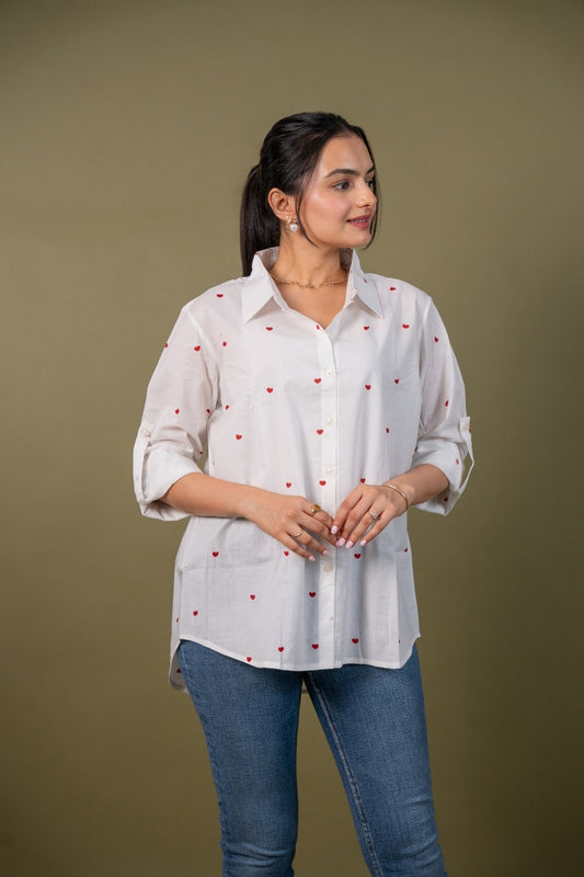 Ekisha Women cotton white printed heart relaxed fit shirt