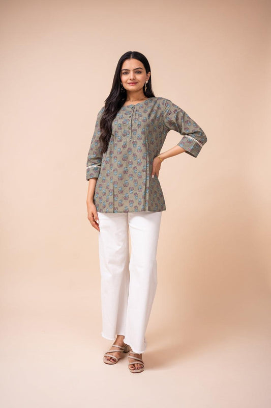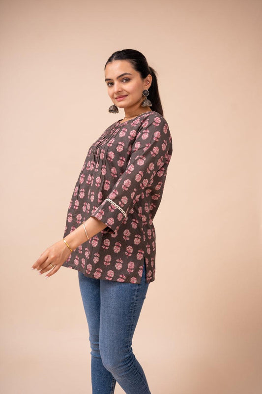 Ekisha's women brown floral printed cotton tunic top short kurti