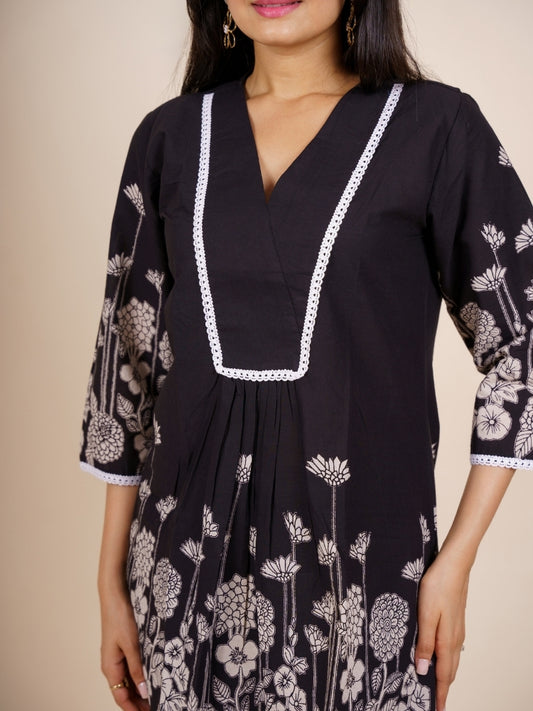 Ekisha's women black designer panel printed cotton co-ord set lounge wear
