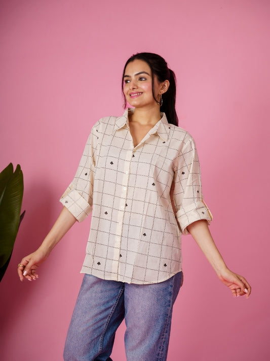 Ekisha Women cotton white butterfly relaxed fit shirt