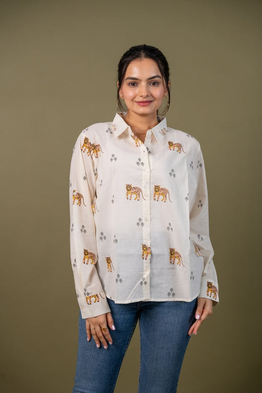 Ekisha Women cotton white lion printed relaxed fit shirt