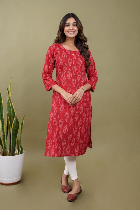 Ekisha women's maroon beautiful designer printed floral printed straight kurta kurti