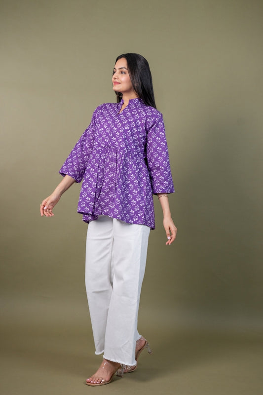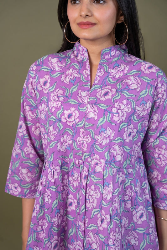 Ekisha's women purple beautiful designer floral printed cotton tunic top short kurti