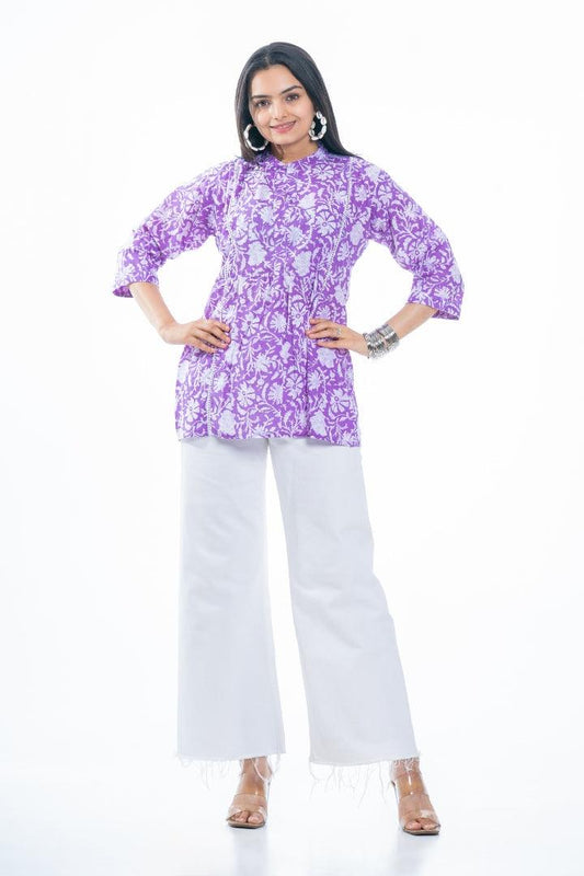 Ekisha's women purple designer floral printed cotton tunic top short kurti