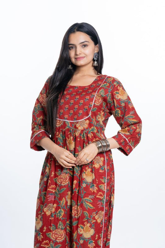 Ekisha women's Maroon designer printed multicolor floral printed straight kurta kurti