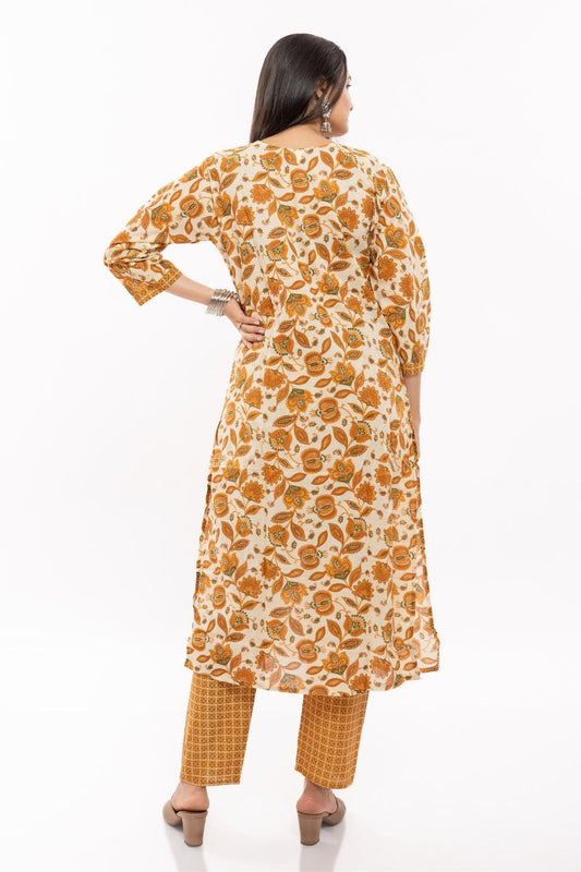 Ekisha's women cotton printed mustard multicolor kurta and pant set