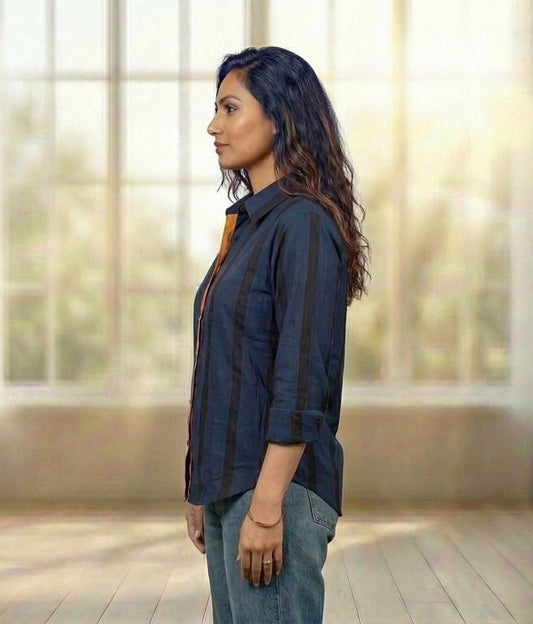 Ekisha Women cotton black white stripes relaxed fit shirt